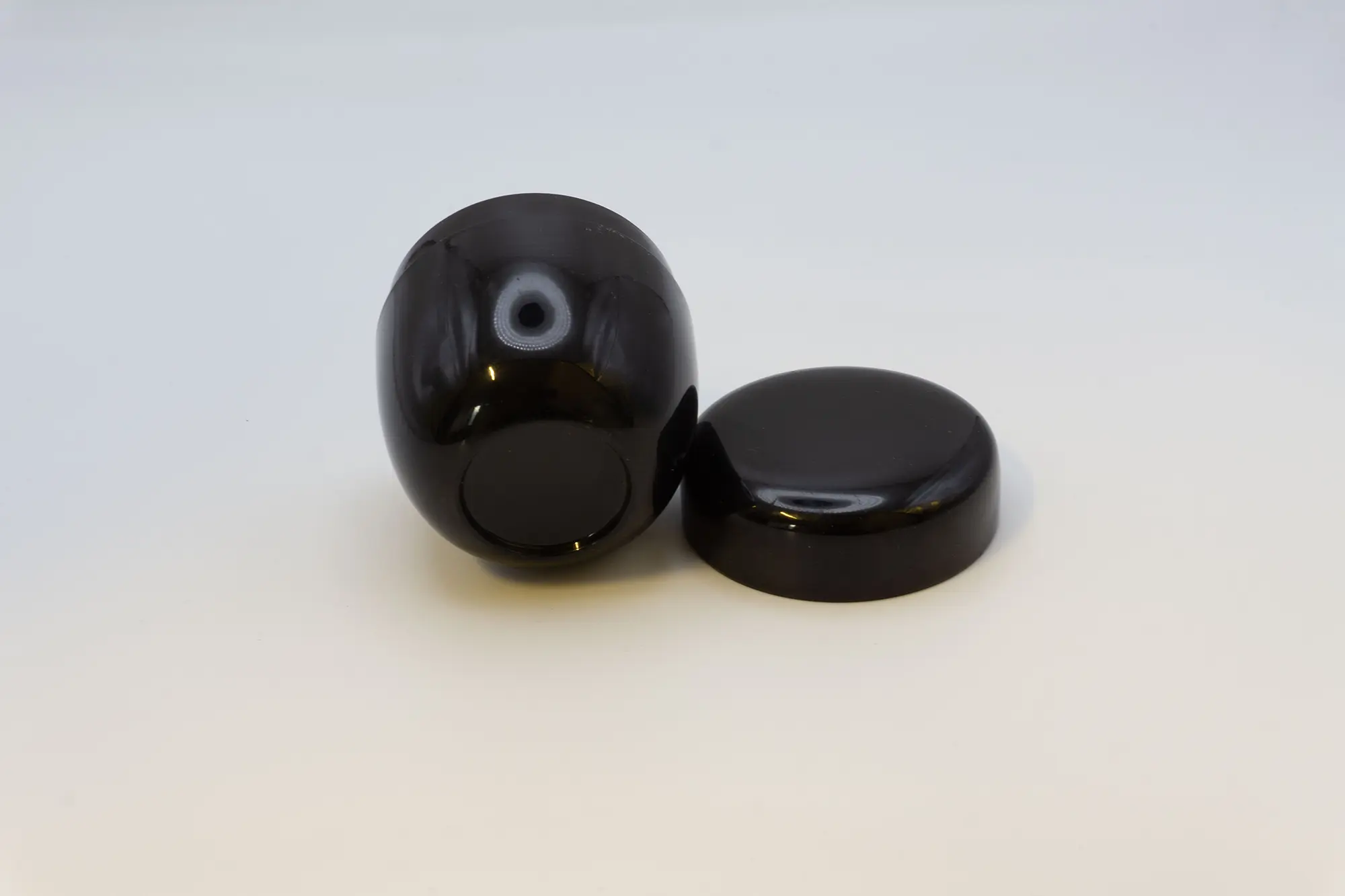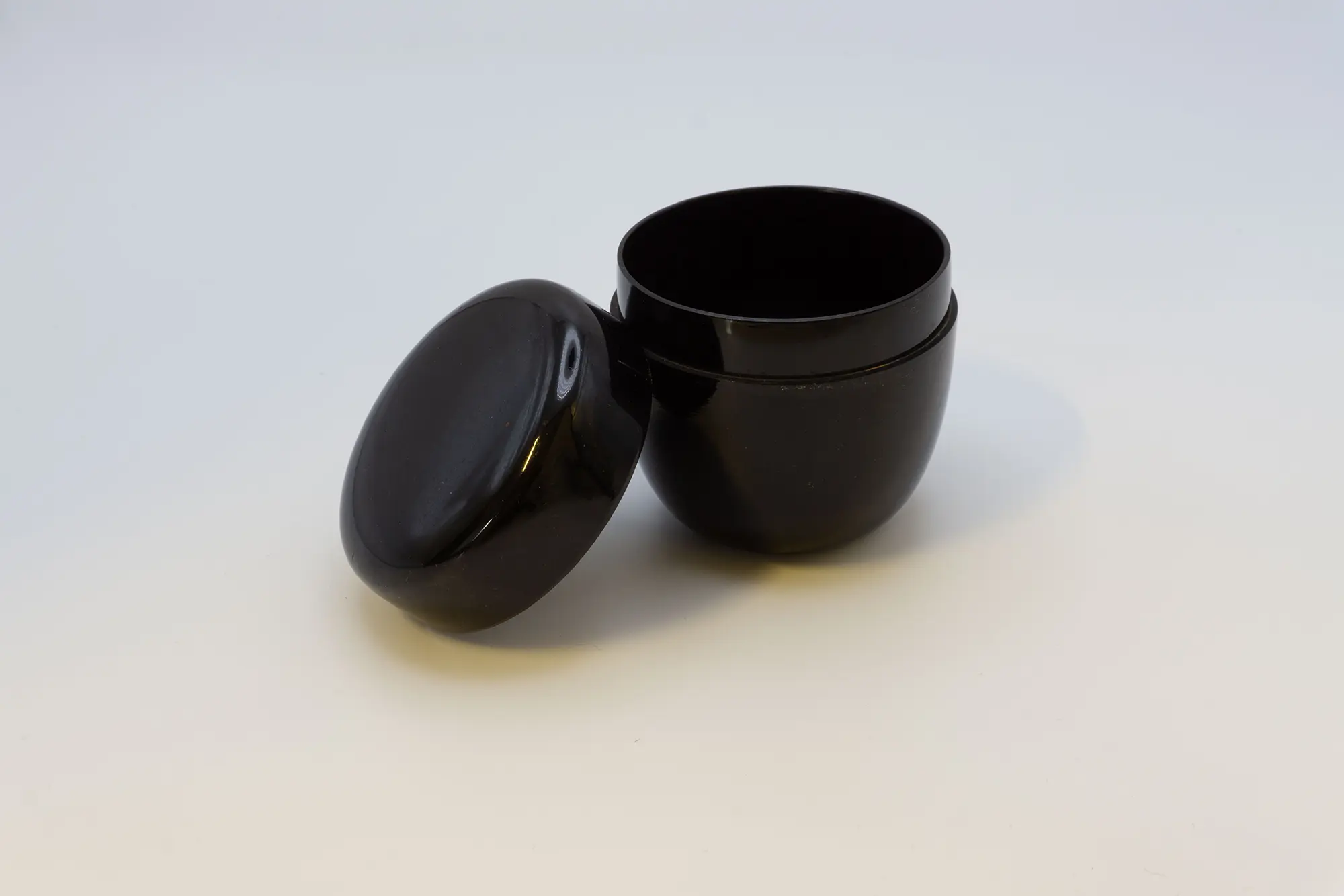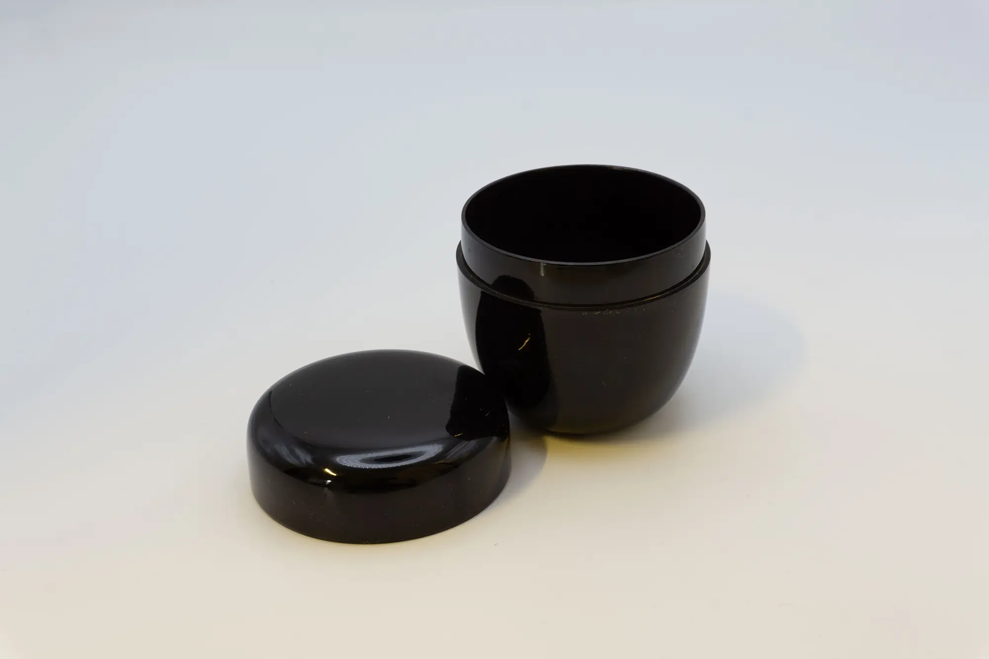 Tea caddy (natsume) in black urushi lacquer, XX Century. Traditional tea caddy used in japan to store tea, usually matcha, for daily use. The form is smooth and rounded, with a snug fitting lid, designed for both elegance and functionality. The minimalist aesthetic and natural beauty reflect the wabi-sabi principles at the heart of the tea tradition.